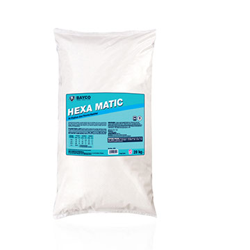 Su sertliğini bağlayıcı özelliği olan alkali çamaşırhane ürünüdür. Pamuklu ve pamuklu/polyester tekstillerdeki lekelerin giderilmesinde etkilidir. HEXA TURBOMAT çamaşırhane sistemi sıvı ürünüdür. Çamaşırhane sisteminde yanlız BAYCO dozaj üniteleri ile kullanılmalıdır.