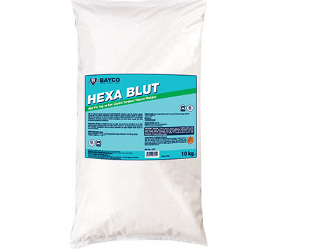 It is an alkali laundry product with the capability of binding the water hardness. It is effective in removing the stains in cotton and cotton/polyester textiles. HEXA TURBOMAT is a laundry system liquid product. It should be used only with BAYCO dosage products in laundry systems.