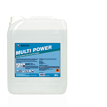 Alkaliye dayanıklı tüm yüzeyler ve yer döşemeleri üzerindeki katı, sıvı yağ kirlerinin giderilmesinde, gres, lastik izi mineralli sentetik yağ ve kirlerinin temizlenmesinde kullanılır. Seramik ve çini taş döşemeler için idealdir. MULTI POWER otomat makineleri, tek diskli makineler ve ıslak paspas sistemi için uygundur. Yüzme havuzu alanında alkali temizliğinde kullanılabilir.